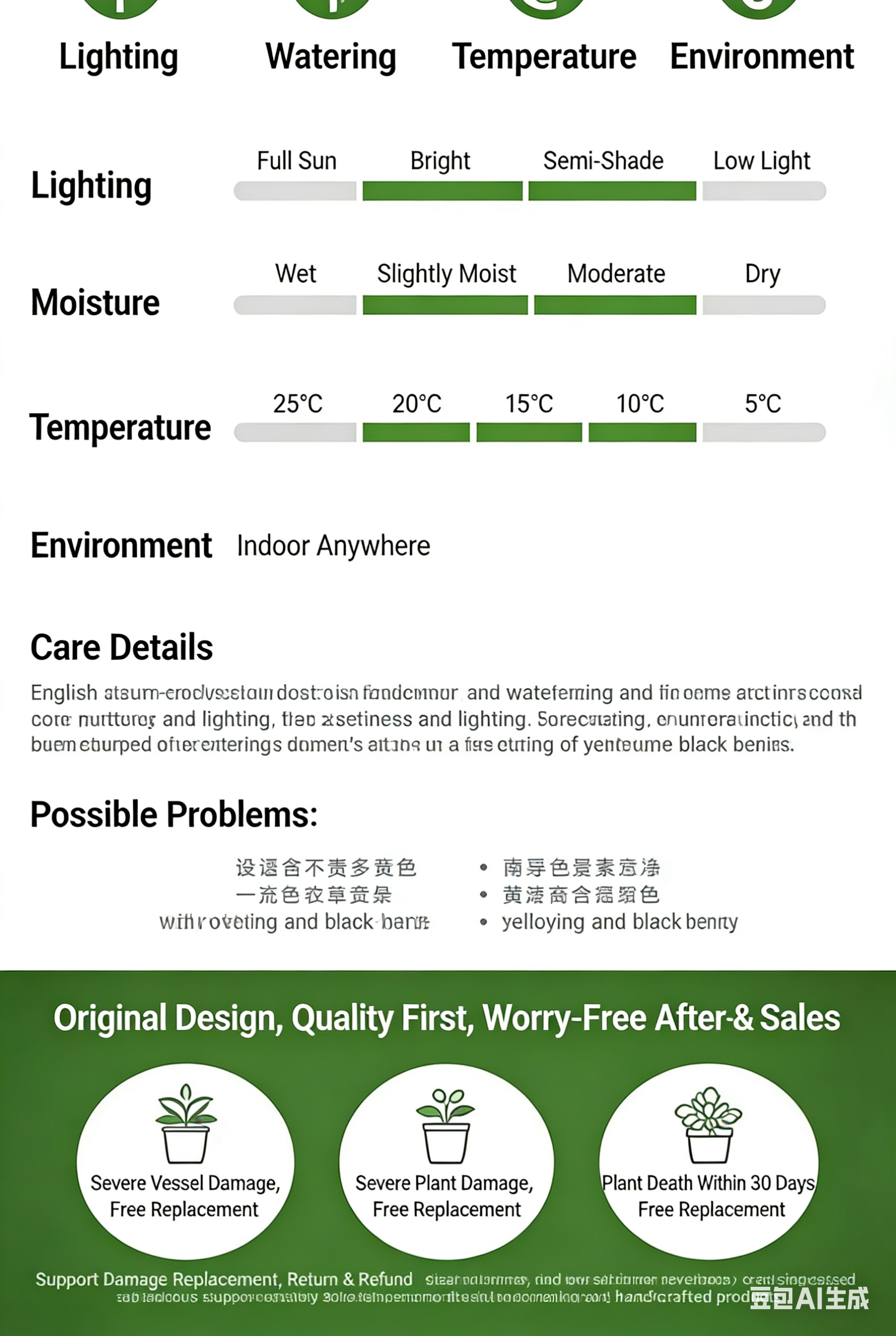 B.If after receiving the product, our product is broken or the plant is wilted. Please contact us and we will reissue it free of charge